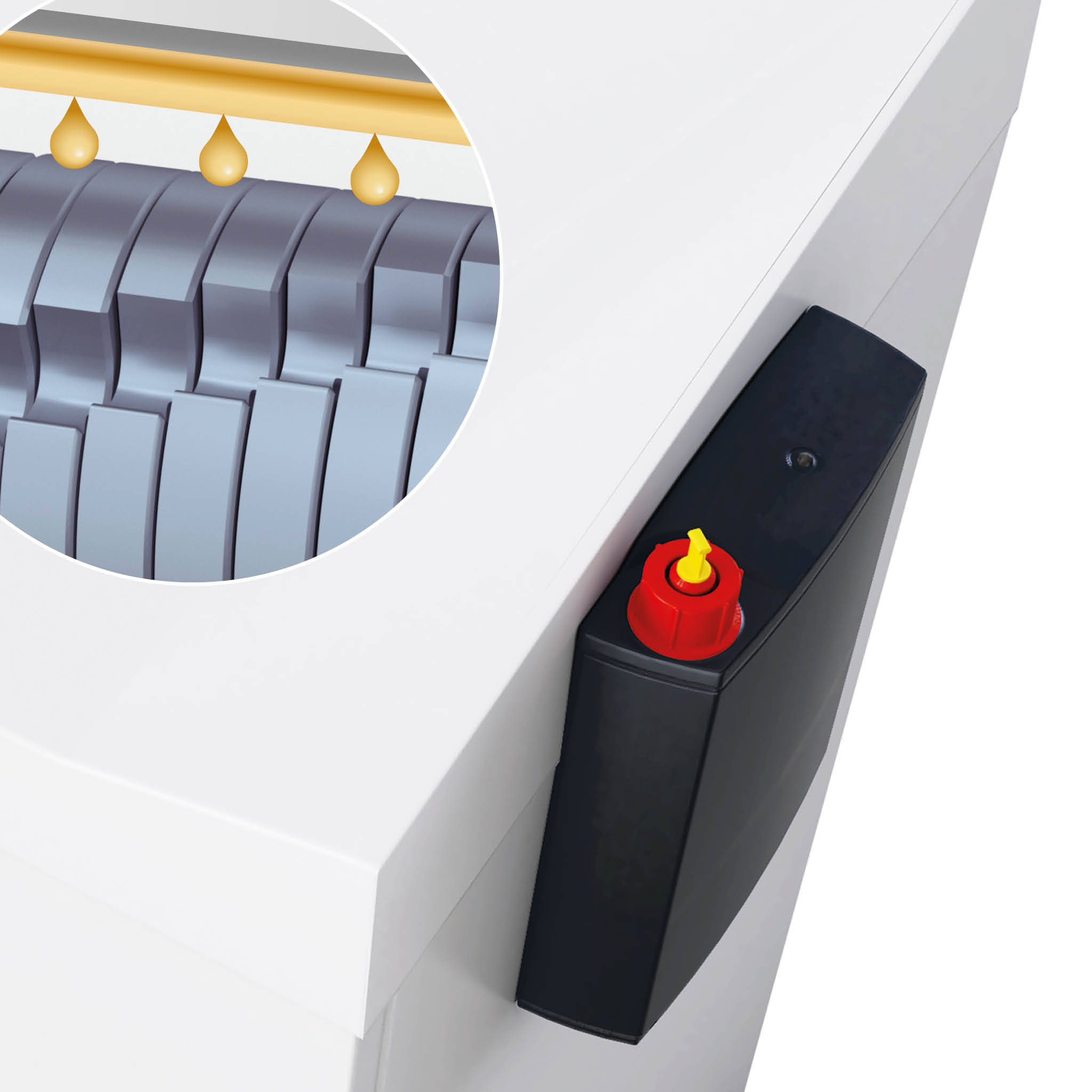 For a consistently high cutting performance, this low maintenance document shredder has an external automatic oiler.