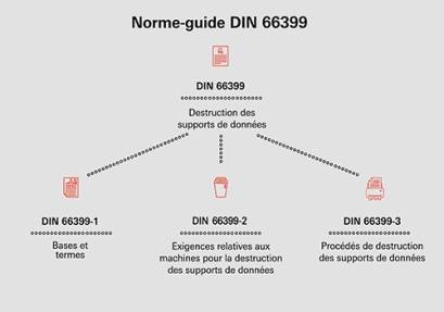 La destruction de ces supports de données est soumise à la norme-guide DIN 66399. Celle-ci est divisée en trois parties:
