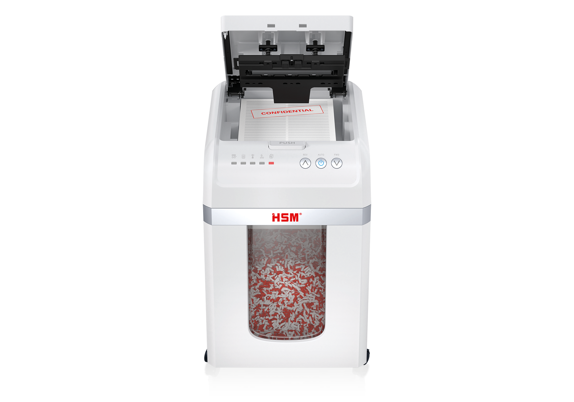 Il distruggidocumenti completamente automatico ti offre una sicurezza dei dati senza sforzo. Basta inserire la pila di carta, chiudere lo sportello superiore e la macchina fa il resto. Il distruggidocumenti Autofeed distrugge fino a 300 fogli in particelle con livello di sicurezza P-4 (4x12 mm), garantendo così la sicurezza dei dati conforme al GDPR.